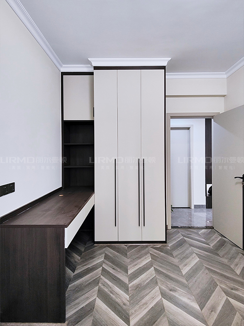 臥室選用一門到頂設計收納空間超大,pet膚感柜門使整個房間看起來干凈簡潔。