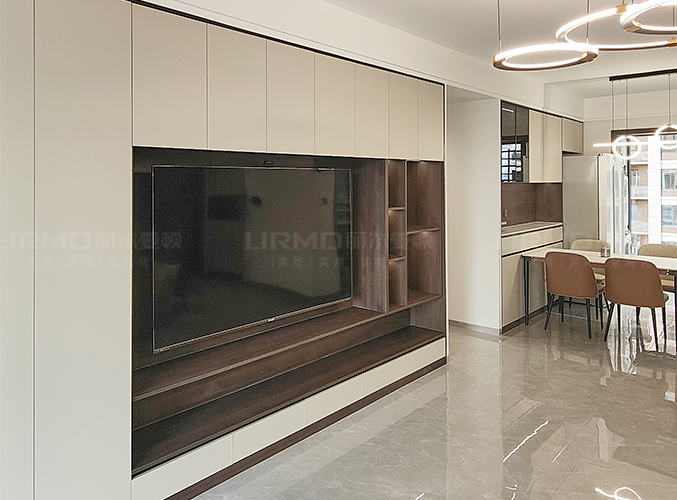 柜子一門(mén)到頂設(shè)計(jì),實(shí)木柜體搭配PET膚感柜門(mén),質(zhì)感超不錯(cuò),多組設(shè)計(jì)更是實(shí)現(xiàn)收納需求,