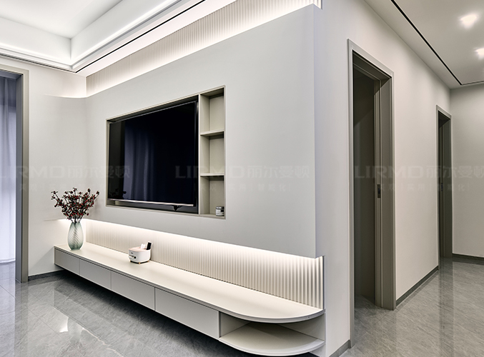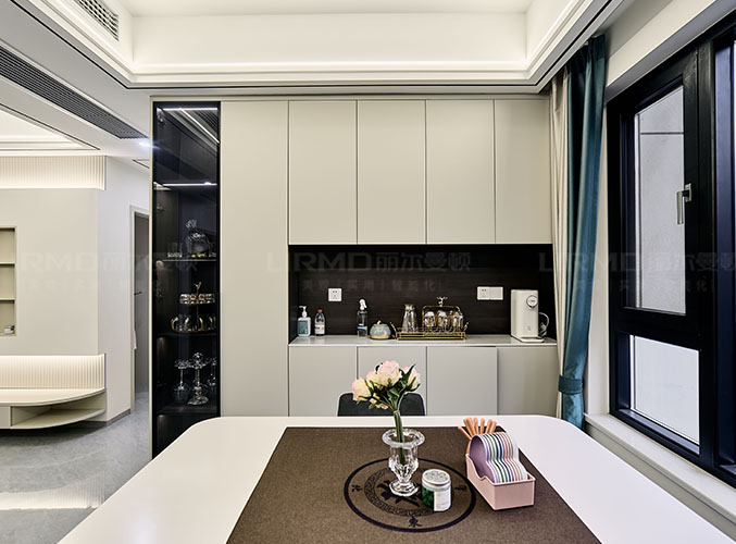 更顯極簡。左側(cè)玻璃展示柜柜門的設計更具設計感。