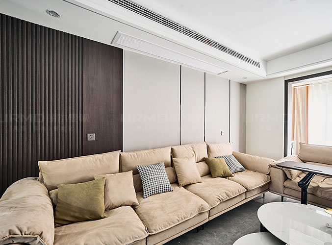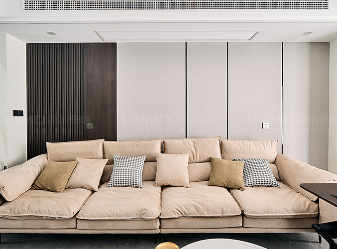 整體以淺灰色和木色為主色調,溫馨治愈。無主燈布局,光影交錯間讓室內更具層次感,