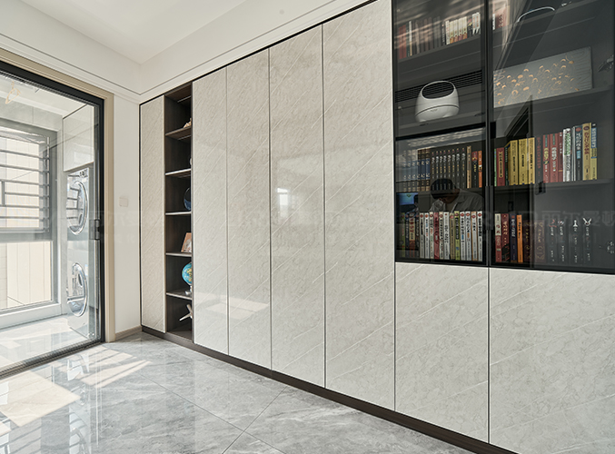 可以放置鑰匙包包等物品。玄關(guān)長虹半透玻璃結(jié)合柜體穿插設(shè)計,更顯時尚。