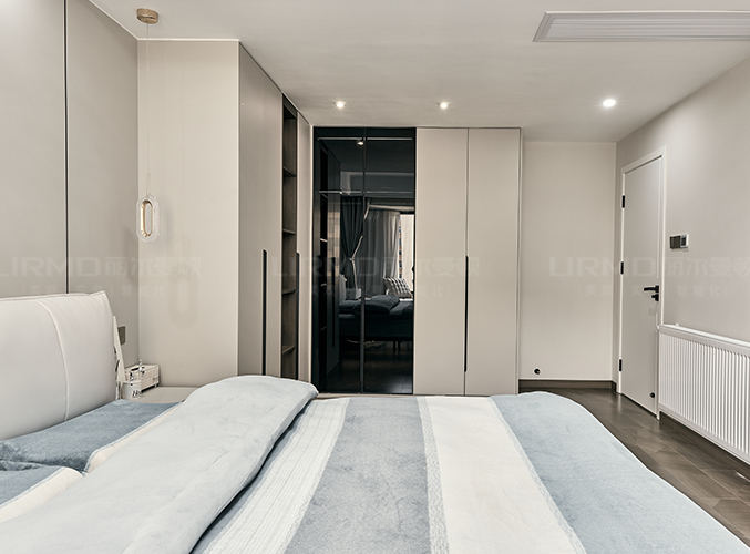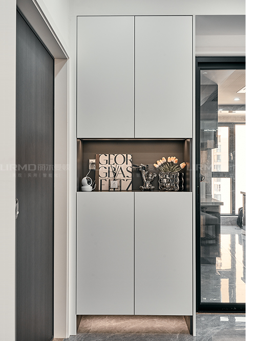 18mm厚杉木芯板,實木柜體搭配PET膚感柜門,下方懸空設計,好放置鞋子,