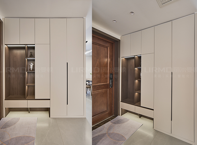 18mm厚杉木芯板,淺色柜門加深色柜體的碰撞,視覺效果更好,既能坐下換鞋
