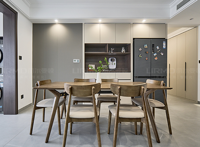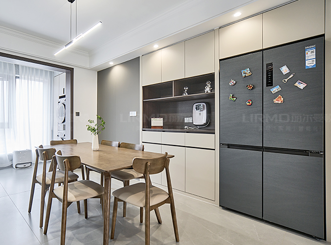 無拉手設計,更顯極簡,內嵌式冰箱設計,不占空間。