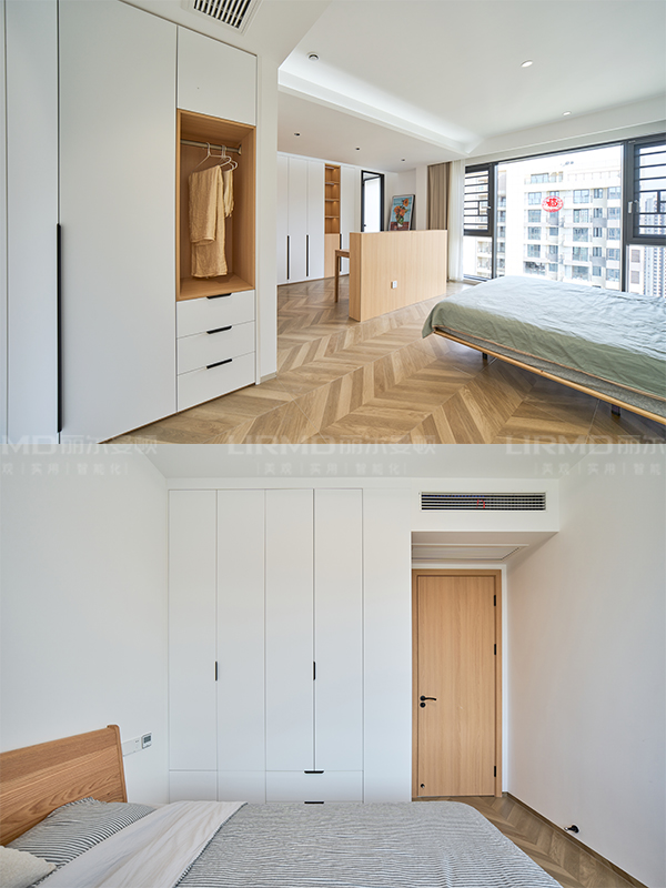 6、冰箱內嵌柜 7、陽臺日雜柜 8、主臥整版大書柜 9、主臥“U”型衣帽間柜 10、兒童房書桌 11、兒童房側面柜體