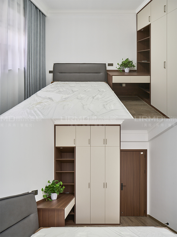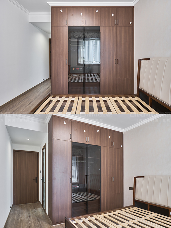 柜體采用足18厚杉木芯板,柜門采用LSB板PET膚感柜門,一門到頂,五金使用原裝進口的百隆五金