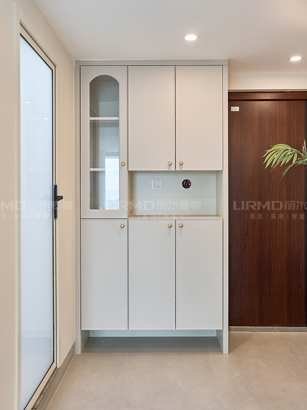 象牙灰的柜門與玻璃柜門的碰撞,更顯精致與優雅