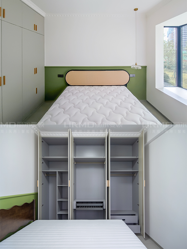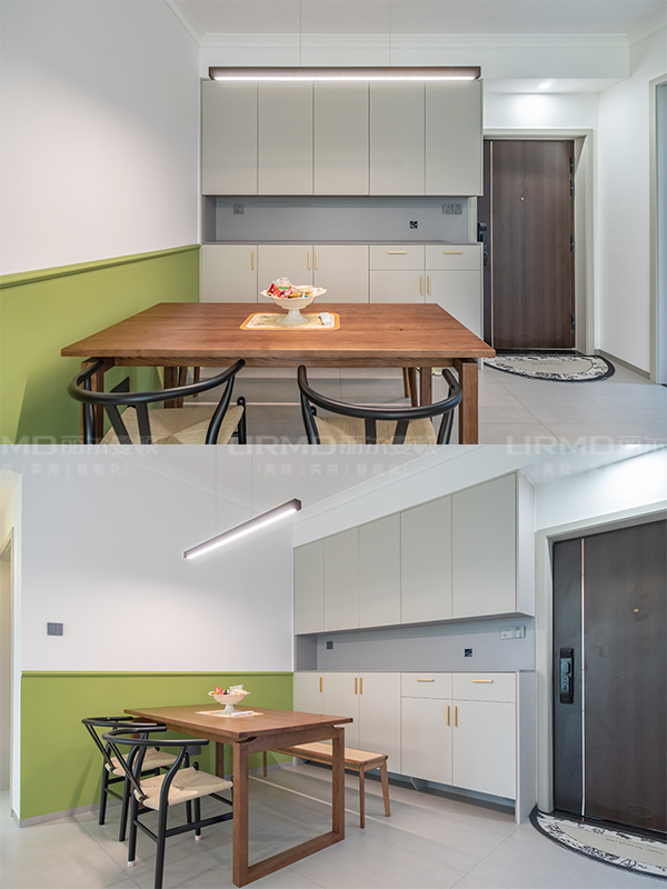 全屋高端定制:柜體板材18厚杉木實芯板,柜門有pet膚感、高光、超晶、五金使用原裝進口奧地利百隆五金