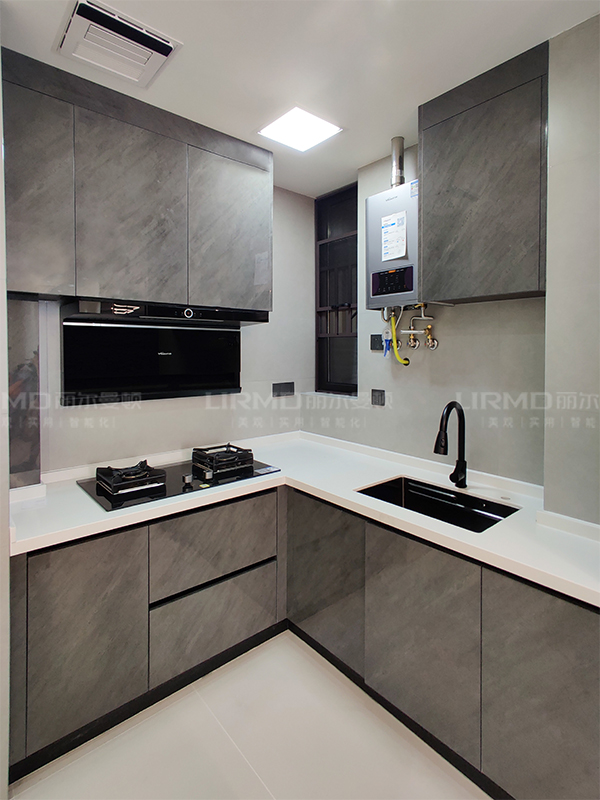 整體使用煙熏尤加利+超晶巖板灰的結合,高級簡潔又耐看