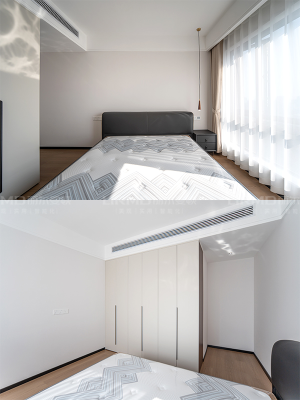 一門到頂衣柜開放格,純色整板的衣柜門,百搭又耐看,左邊搭配開放格,方便又實用