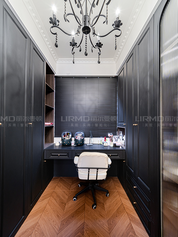 長沙靠譜裝修公司,長沙靠譜全屋定制,臥室衣柜加梳妝臺,法式復(fù)古風(fēng),