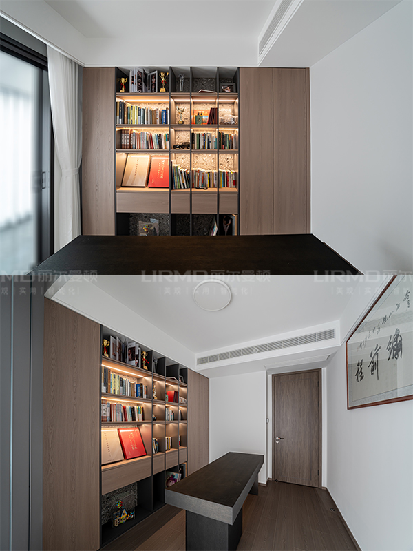 書房書柜運用了最新的夾心工藝,讓原本單調的柜子看起來更有設計感